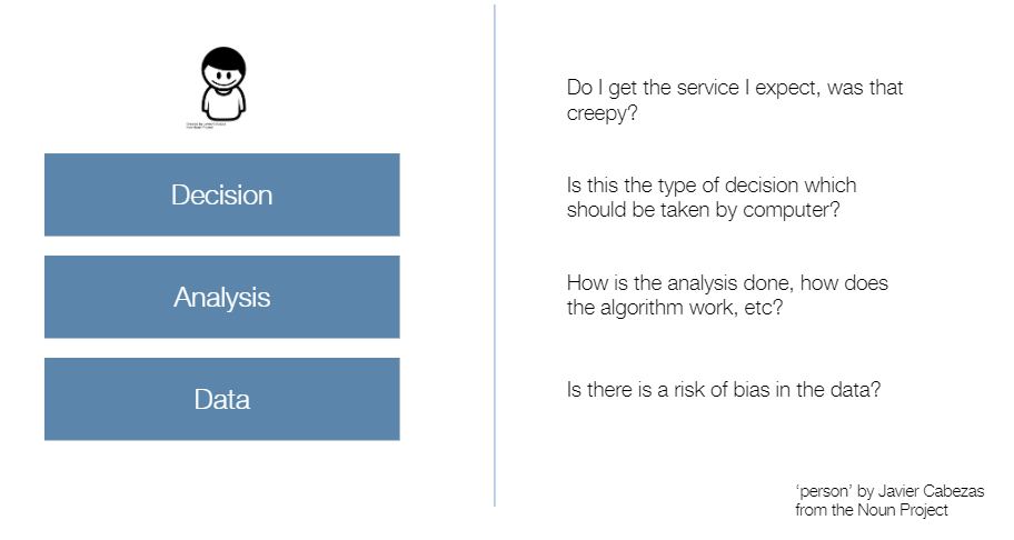 The final level is the data – data can contain bias in how it is collected, or even bias in what is collected. We recommend that governments use tools like the data ethics canvas to make sure they have taken these considerations into account.